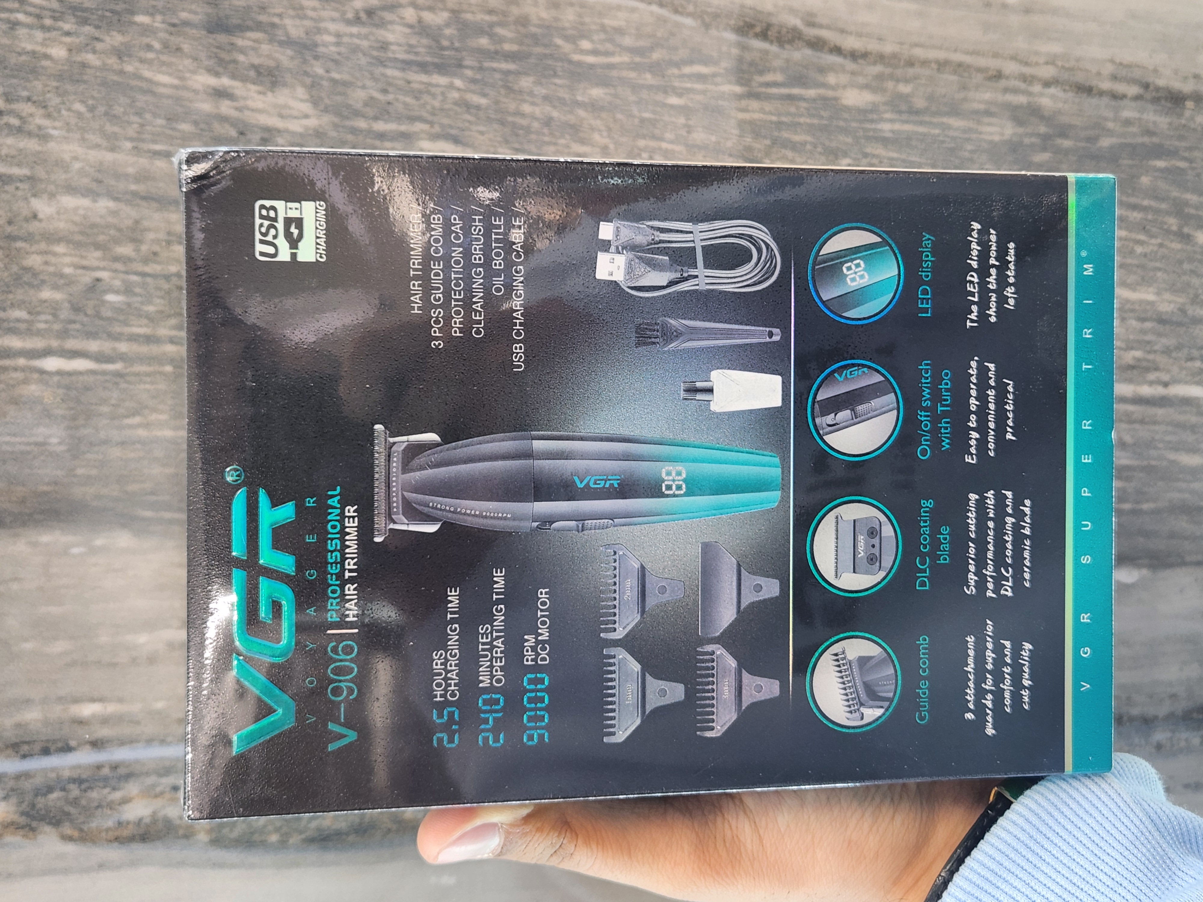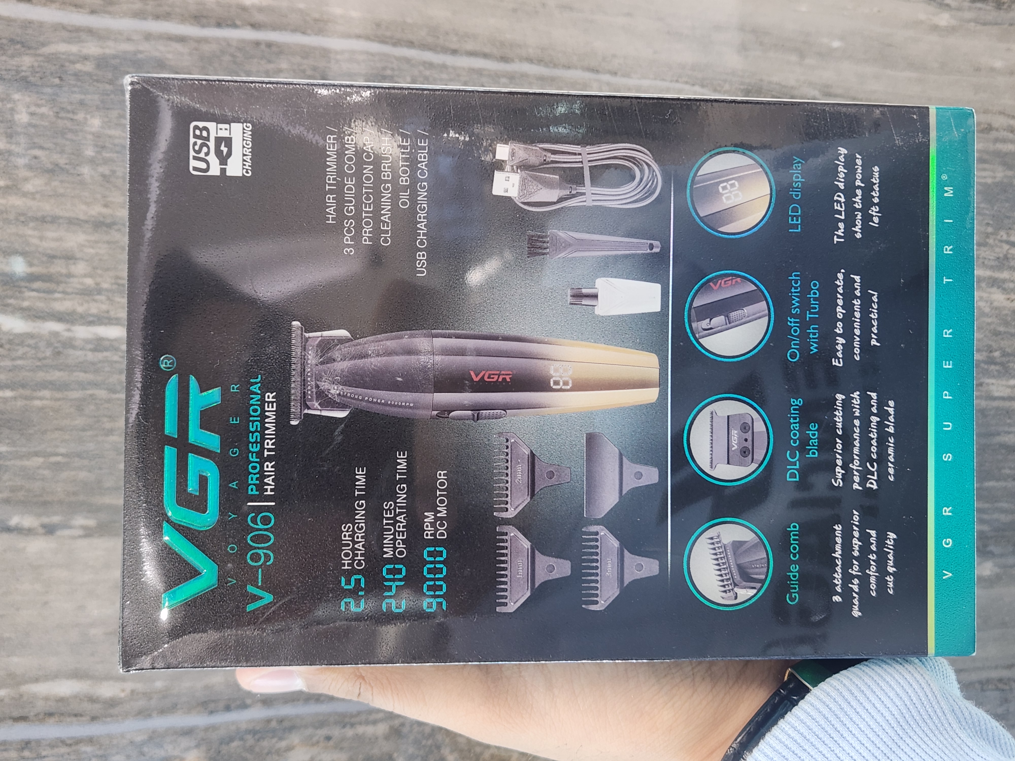 3 عدد شانه - درپوش حفاظتی - برس تمیز کننده - بطری روغن - کابل شارژ USB