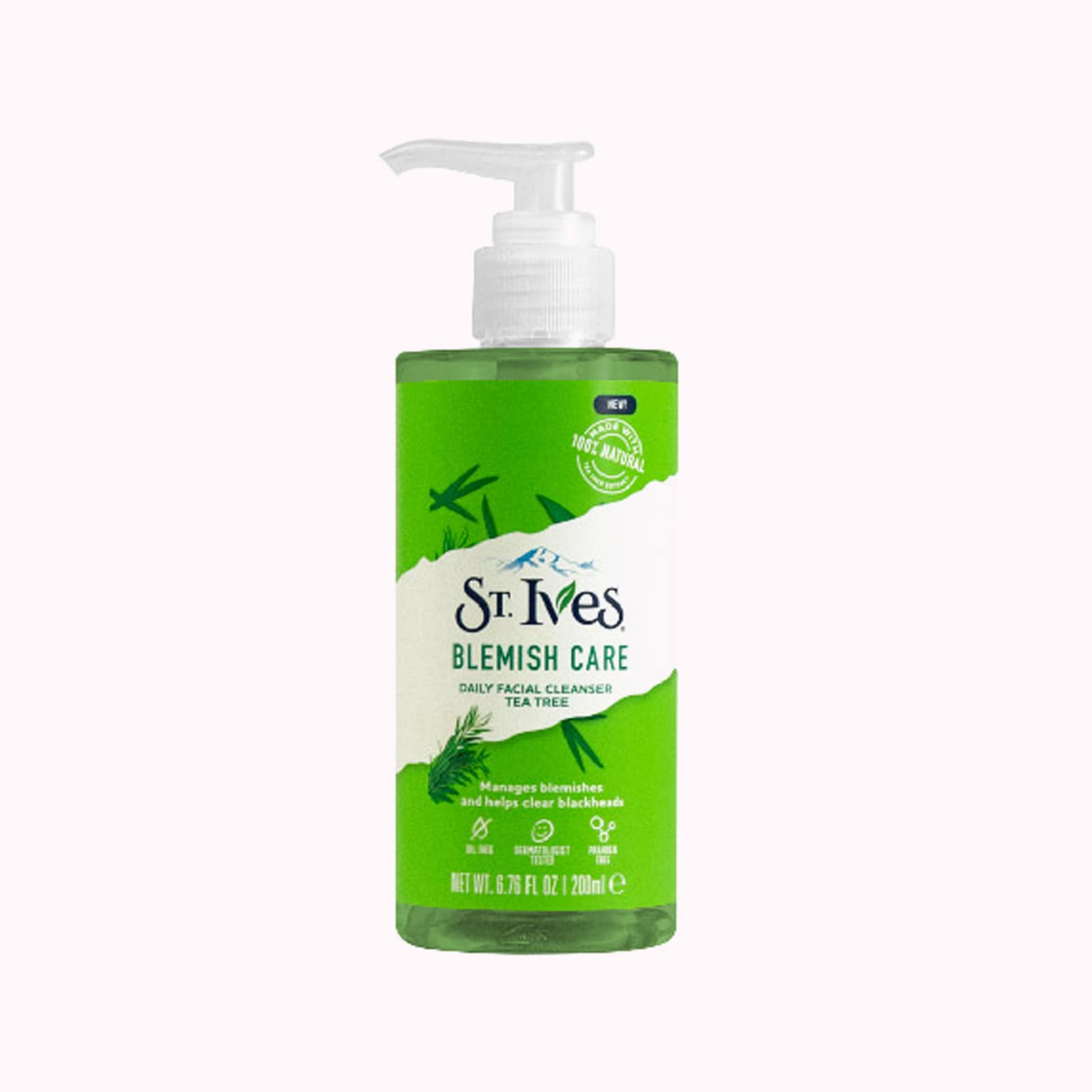 ژل شوینده صورت Blemish Care سینت ایوز St.IVES باعث از بین بردن چربی اضافه پوست و کنترل میزان ترشح آن شده از برق زدن پوست جلوگیری می کند. این ژل منافذ پوست را به خوبی از آلودگی، چربی و جوش های سر سیاه پاک می کند. این محصول حاوی عصاره درخت چای است که با خاصیت آنتی باکتریال مانع از به وجود آمدن جوش و آکنه می شود. این ژل حاوی سالیسیلیک اسید است که یک لایه بردار ملایم بوده که موجب افزایش شفافیت و روشن شدن پوست می شود.